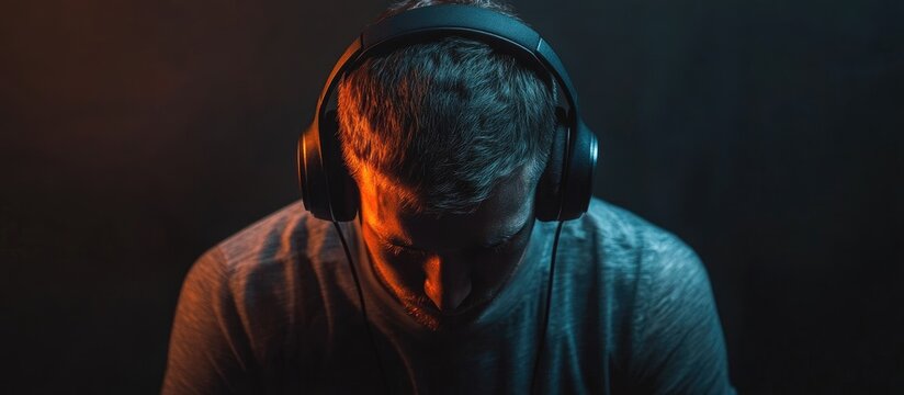 Close up of a handsome businessman relaxing with his eyes closed sitting in the office. Calm happy entrepreneur resting in break at work breathing deeply, feels peace of mind. Male relaxes to relieve