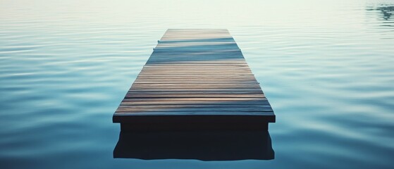 A serene wooden dock extending into calm waters creates a peaceful and reflective atmosphere.