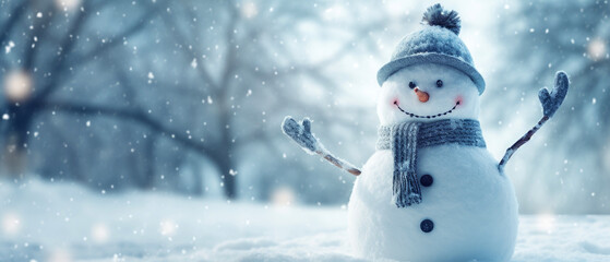 Christmas winter background with snow and blurred bokeh.Merry christmas and happy new year greeting card with copy-space.