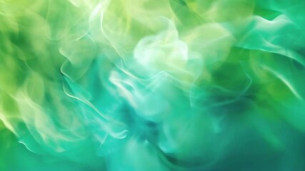 Abstract image featuring fluid, smoke-like patterns in shades of green and blue. The soothing blend of colors creates a serene and calming visual effect, suggesting motion and tranquility.