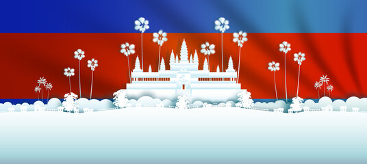Vector Cambodia flag banner Cambodia flag with white background Vector illustration design Cambodia independence day banner design