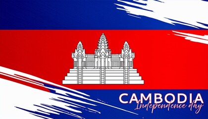 Cambodia Independence Day on a white background, Vector design of Independence day of Cambodia, Typographic Design of Cambodia National Day, Flag typography of Cambodia