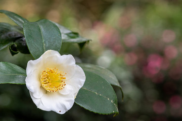 Close up of a camellia sinensis flower in bloom