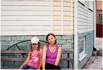 Mom and daughter on a bench