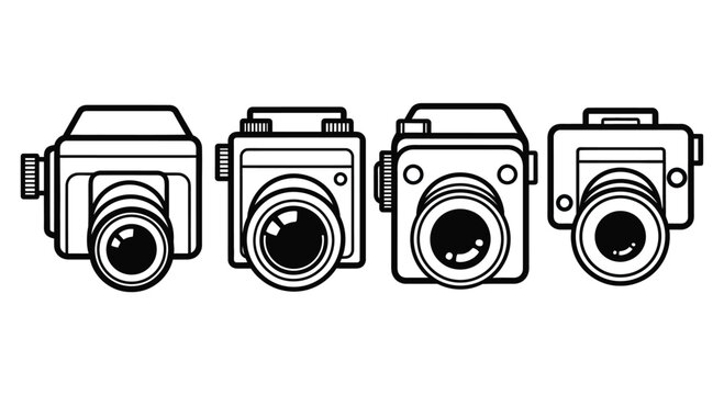 Four line art cameras showing different angles and designs for photography enthusiasts vector