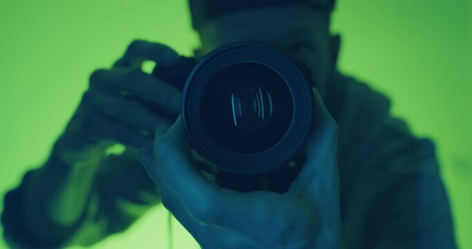 Professional photographer with camera capturing creative moment