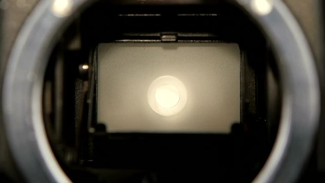 Diaphragm camera shutter blade in slow motion. Closeup camera lens