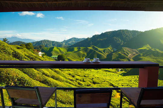 Viewpoint on the top of cameron highland, tea valley and sunrise in Malaysia