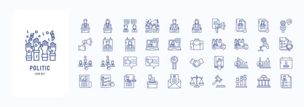 Political Science icon set. Contains related to governance, activism, government, politics, campaign and more. Political icon set. Web icons pack. Vector line and solid icons.