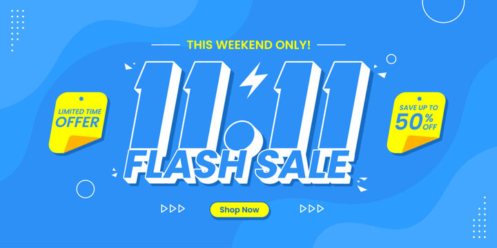 11 11 flash sale promo banner with discount offer. 11 11 shopping festival super sale banner. Flash sale special offer banner for social media post or website banner. Flash sale campaign