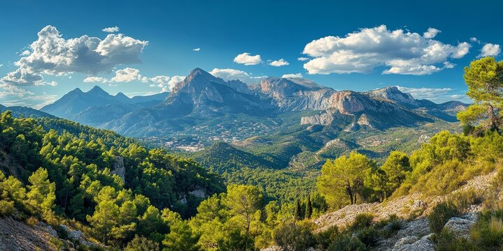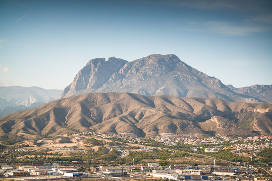 Stunning view of Puig Campana mountain, showcasing its majestic peaks and natural beauty. Explore the captivating landscapes of Puig Campana mountain and experience nature s splendor.