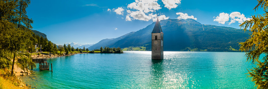campanile 01 - in Val Venosta, spunta dal lago il campanile della vecchio paese di Curon