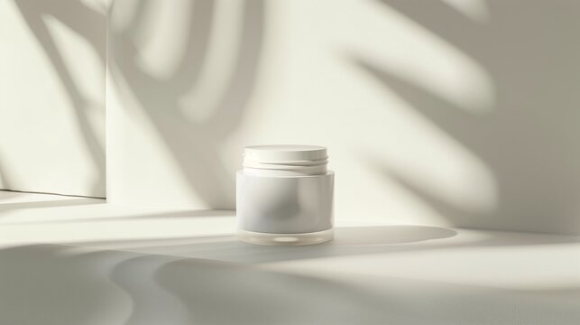 Photo of a simple, minimalist product. One can of cream installed against a background with soft beige tones. Generated by artificial intelligence.