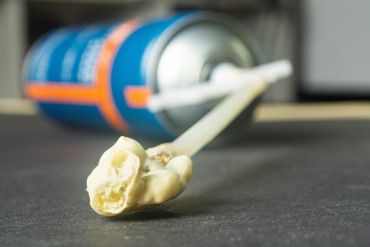 Close-up of a used can of foam.