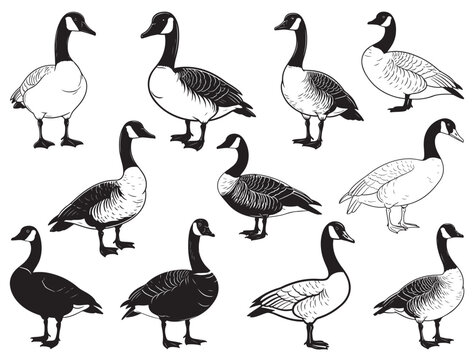 Canadian goose bird flying silhouette vector black and white icon isolated illustration image decal design file download