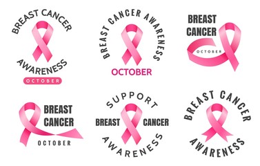 Breast cancer emblems. Vector woman pink ribbons aware logo signs isolated on white background