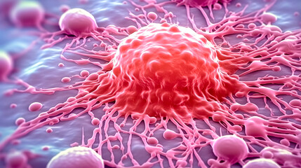 Macro view of a cancerous tumor cell that is attacking the body. Generative AI.