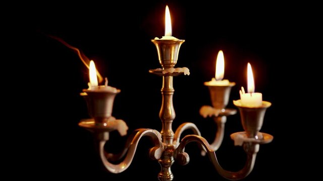 Halloween Elegant candelabrum with six glowing yellow candles creates warm ambiance and soft lighting dark