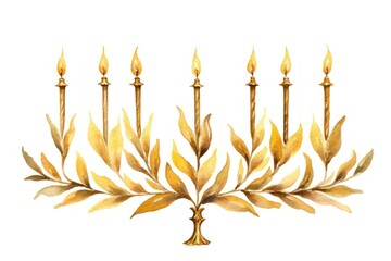 Mini golden Hanukkah modern nine-branched candelabrum lit chandelier hanukkah candle.