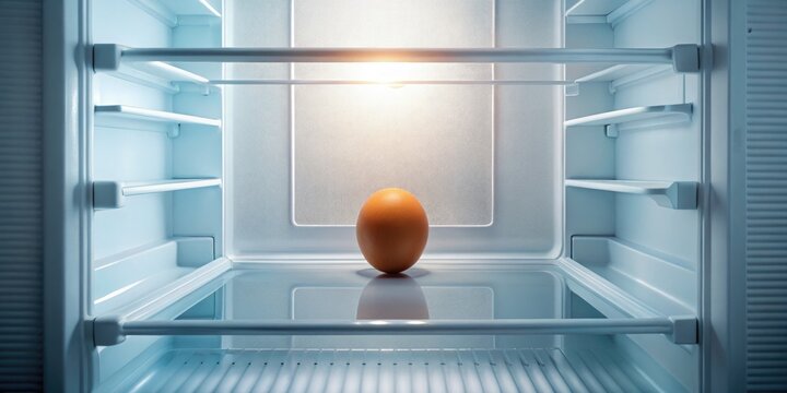 Empty Fridge with a Single Egg: Candid Photography of Minimalist Kitchen Scene
