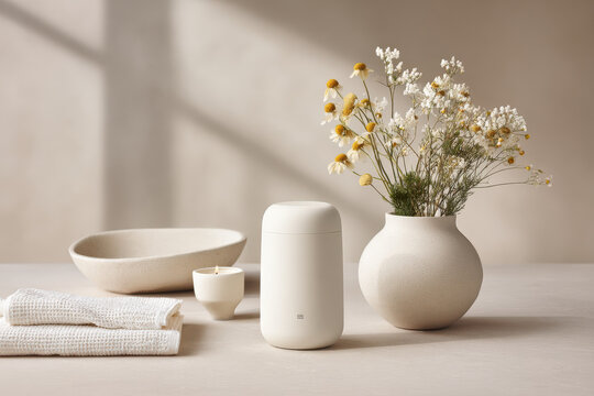 White spa products neatly displayed with a central empty area, suitable as a background for text or design