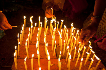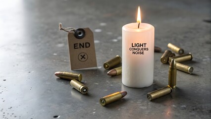 A warm candle glows symbolizing hope and remembrance its gentle light cutting through the darkness with Bokeh background