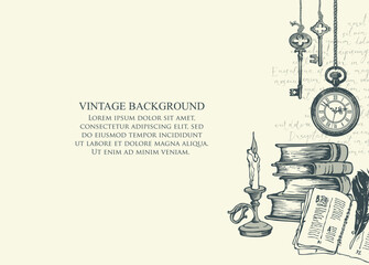 Detailed Ink Drawing of a Human Skull and Dripping Candle. Vector hand drawn illustration