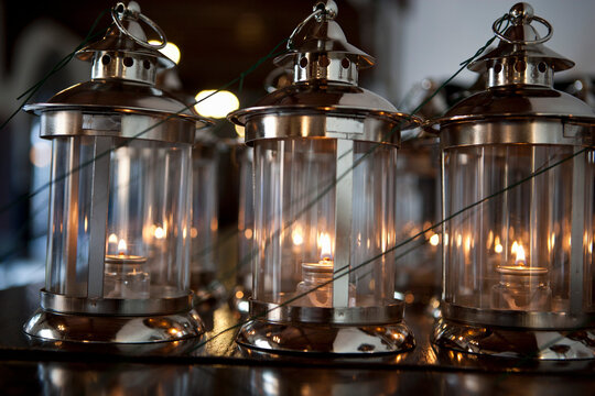 Group of candles sitting on a table, perfect for dinner party or special occasion