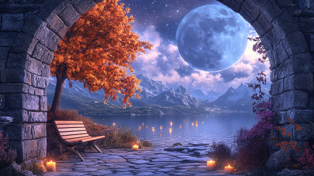 A romantic candlelit setting with rose petals, overlooking a serene sunset by the water, perfect for intimate dinners.