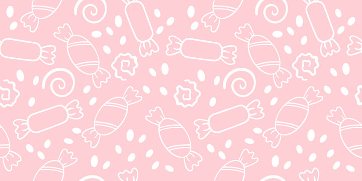 Candy shop simple vector web banner, border, background, poster. Single line art colorful illustration with text Candy shop.