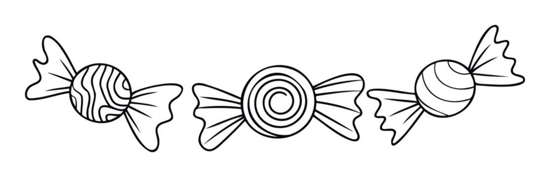Assortment of wrapped candies with swirled and striped patterns, perfect for confectionary branding and sweet celebration themes.
