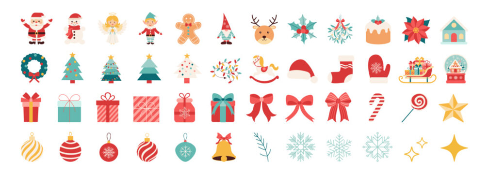 A collection of Christmas icons including Santa Claus, reindeer, and a Christmas tree. The icons are arranged in a grid, with some icons overlapping each other