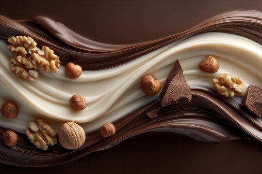 cream, chocolate waves, nuts,Color Grading, Natural Lighting, Beautiful Lighting