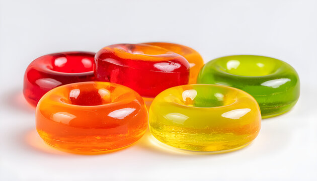 plastic human brain with colorful candy and sprinkles on white background, captured in photorealistic hyperrealism with detailed focus