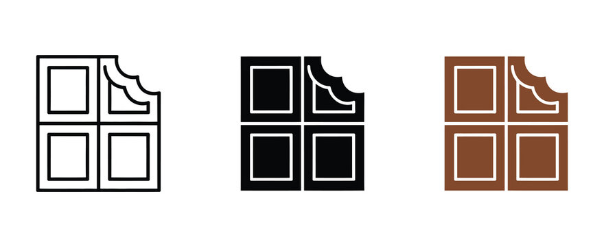 chocolate bar icon set vector on white background, a high ranked vector illustration set of dessert symbols, showcasing chocolate bars, bite marks, sweet design elements, and professional creative