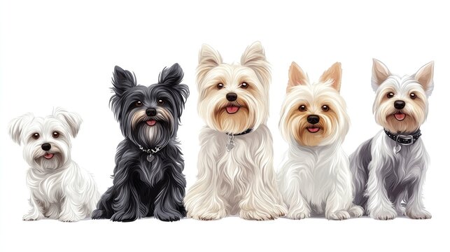 Diverse Canines: Group of Dogs in Various Sizes Displayed on White Background
