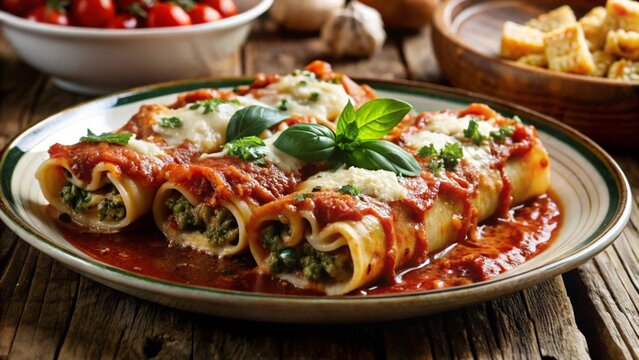 Italian pasta cannelloni , vegetarian option , Italian cuisine , balanced lunch , wallpaper , background.