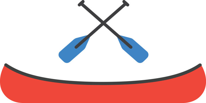 A black and white illustration of a canoe with a paddle crossing it on a white background image view