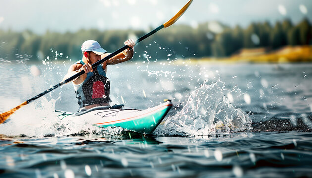 Focused canoeist maneuvering through rough waters  summer olympic games sport concept