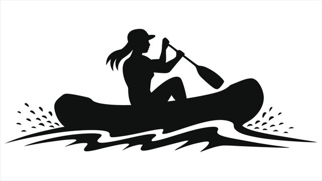 Female Kayaker/Canoeist Silhouette - Outdoor Water Sports & River Adventure Vector.