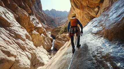 Canyon Adventure: Climber Navigating Rocky Terrain