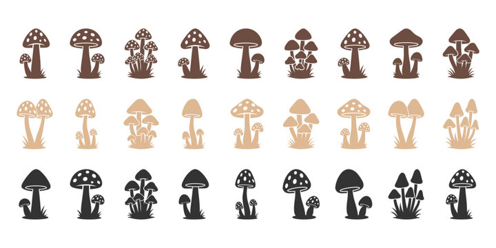 Mushroom silhouettes set, large pack of vector silhouette design, isolated white background