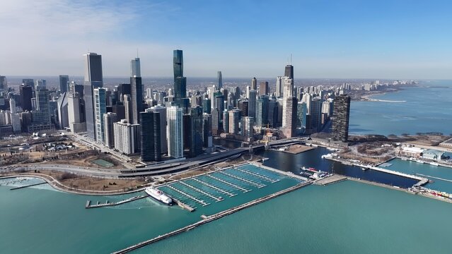 Chicago Skyline In Chicago Illinois United States. Aerial View Of A Bustling City With High-Rise Buildings And Traffic. Metropolitan Skyline Panoramic City View Stunning.