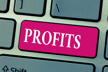 Word writing text Profits. Business concept for Financial gain Difference between amount earned and spent Income.