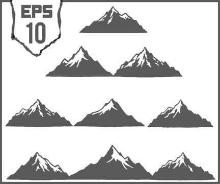 Mountain range silhouette icons set with snow capped peaks and sharp edges mountains summit
