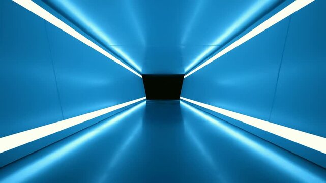 A futuristic blue tunnel with radiant lights leads to a mysterious destination in this captivating video. . use as multipurpose tittle intro, background. product mockup. motion graphics background