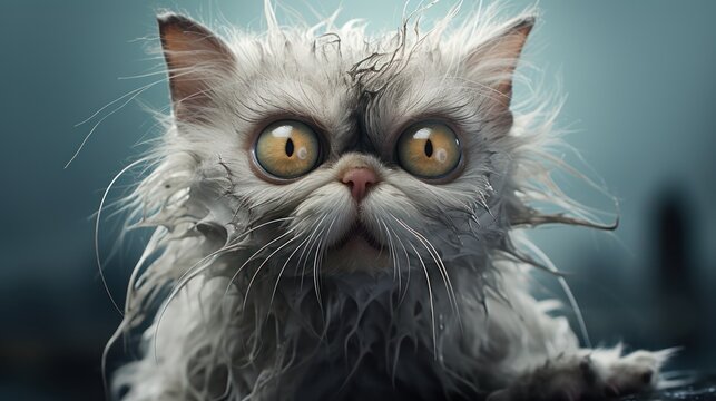 A close-up photo capturing a cat's face staring into the camera, revealing emotions of fear, anger, and a need for attention.