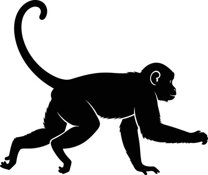 silhouette of a capuchin monkey agile, playful, and full of tropical life, isolated on transparent background