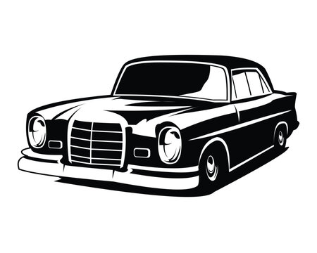 luxury vintage car logo seen from front. amazing sunset view design. vector illustration available in eps 10.