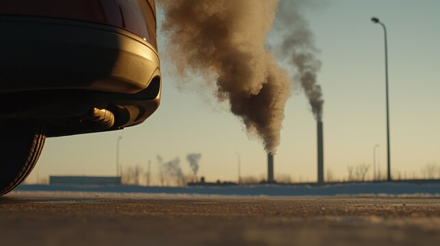 Car emitting white smoke from the exhaust pipe Harmful PM2 5 in toxic air pollution Controlling vehicle emissions Environmental concerns regarding clima
